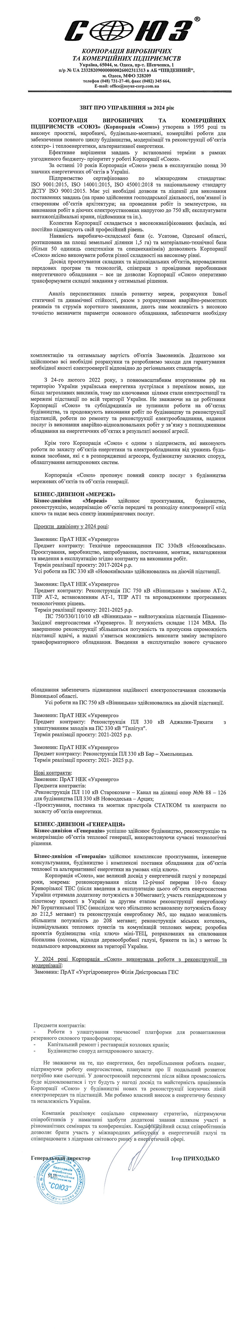 ЗВІТ ПРО УПРАВЛІННЯ ЗА 2024 РІК
